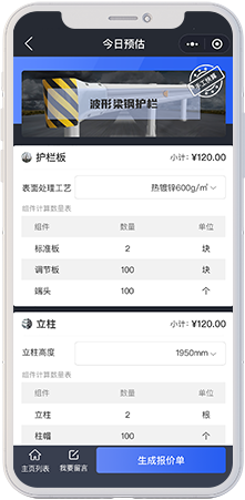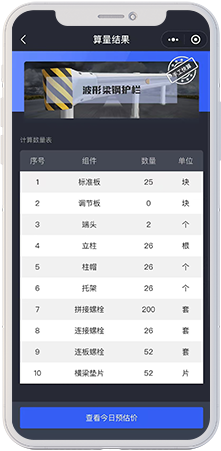 基于此,助算应运而生,总结了波形护栏行业数十年经验以及通过行业大数据的应用,能够通过简易的参数快速的计算出路段所需要的材料数量以及当日的预估价格,成功解决了行业中算量难、报价慢的问题。