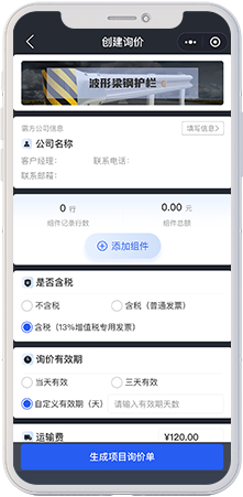 长期以来,行业中关于波形护栏的报价都有着较长的报价链条,比如信息从用户出发、到销售公司的销售再和采购、再流转到生产厂家的销售或核价、甚至还要到钢材厂等等,整个报价周期耗费了数天的时间的同时所得到的价格有效期也仅仅是当天有效。